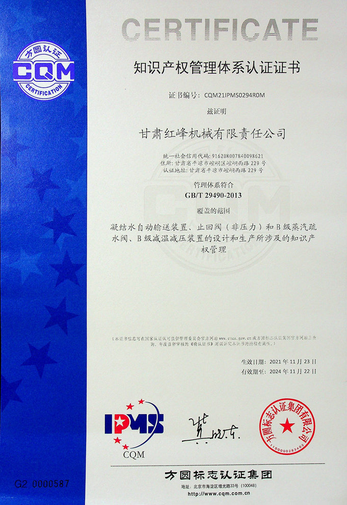 知識產權管理體系認證證書