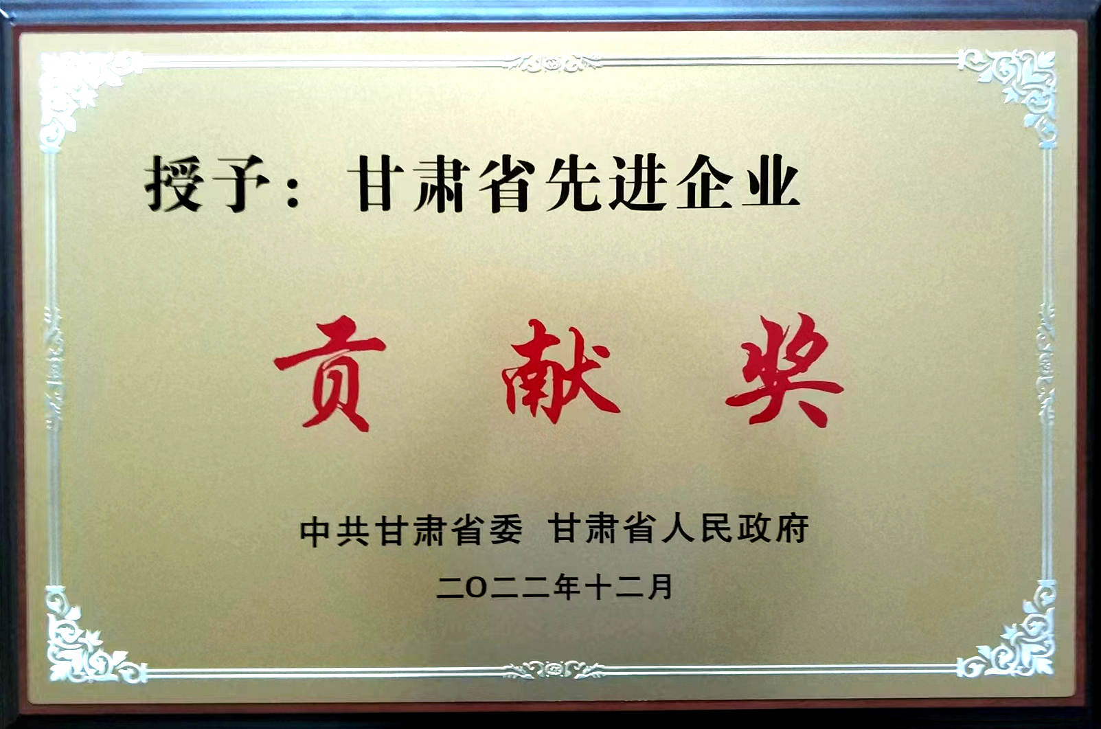 2022年甘肅省先進企業貢獻獎