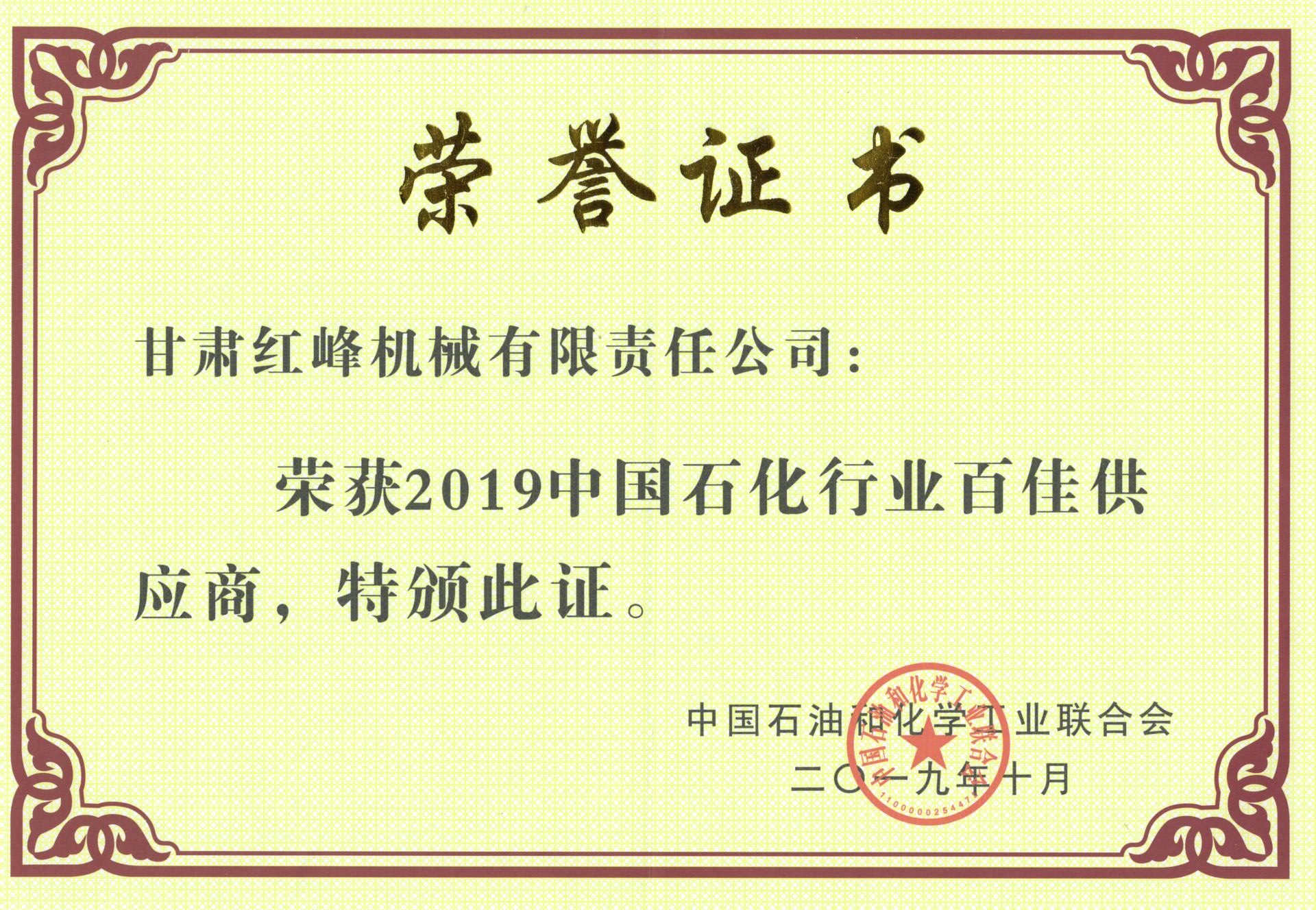 2019年中國石化行業百佳供應商