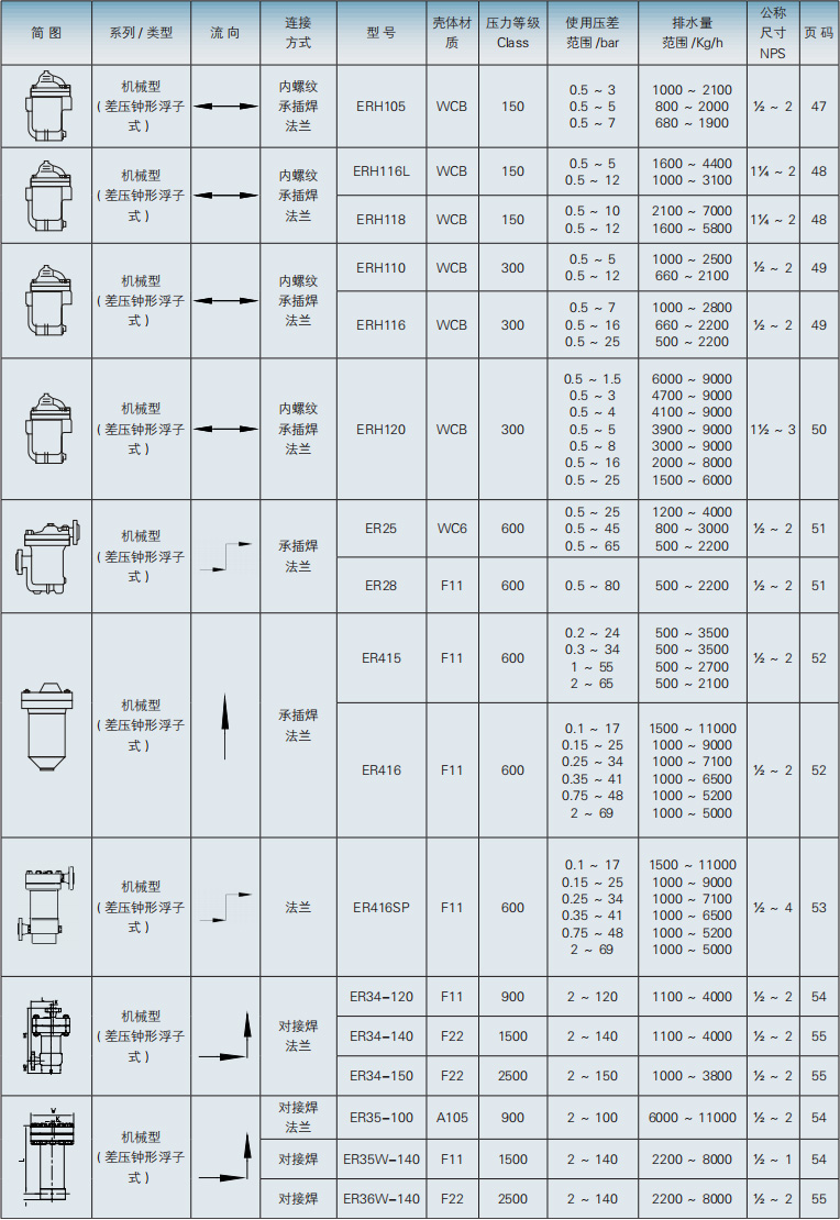 Suitable for: high pressure, overheating occasions and a large number of condensate flow equipment.